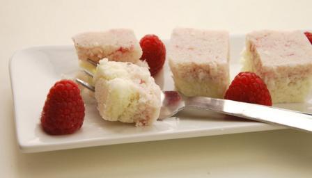 Chill the cake in the fridge overnight. Cut into squares to serve